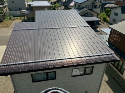 雪庇ができないように、スノーストップとアングル雪止めを設置しました