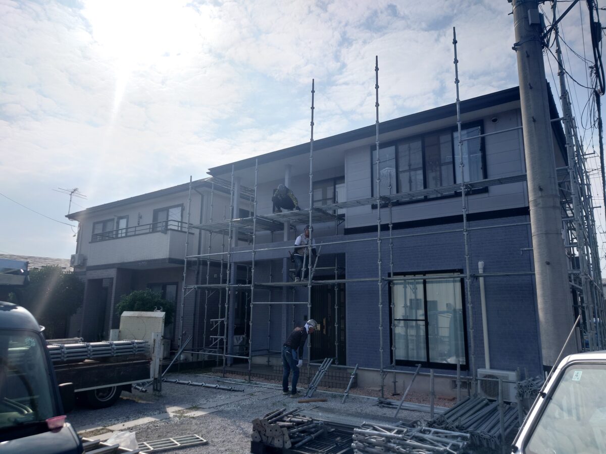 当社では、自社で足場を所有しており、足場を掛けてから、塗装を行い