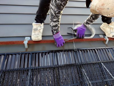今回は、雪止めアングルに、ステンレスの針金で取り付けました