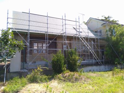 先週で塗り替えのお宅が終わり、その足場を今度は屋根塗装用に組みました